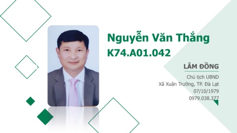 Nguyễn Văn Thắng K74.A01.042 LÂM ĐỒNG Chủ tịch UBND Xã Xuân Trường, TP. Đà Lạt 07/10/1979 0979.038.377